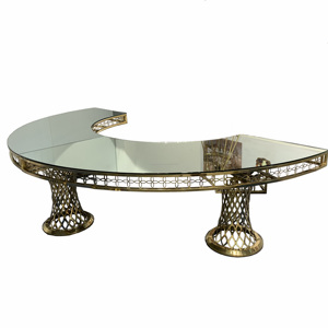 Stainless Steel Carved Rose Gold Base Wedding Serpentine Table Hotel Banquet Dining Half Moon Table China Dining Table And Banquet Table