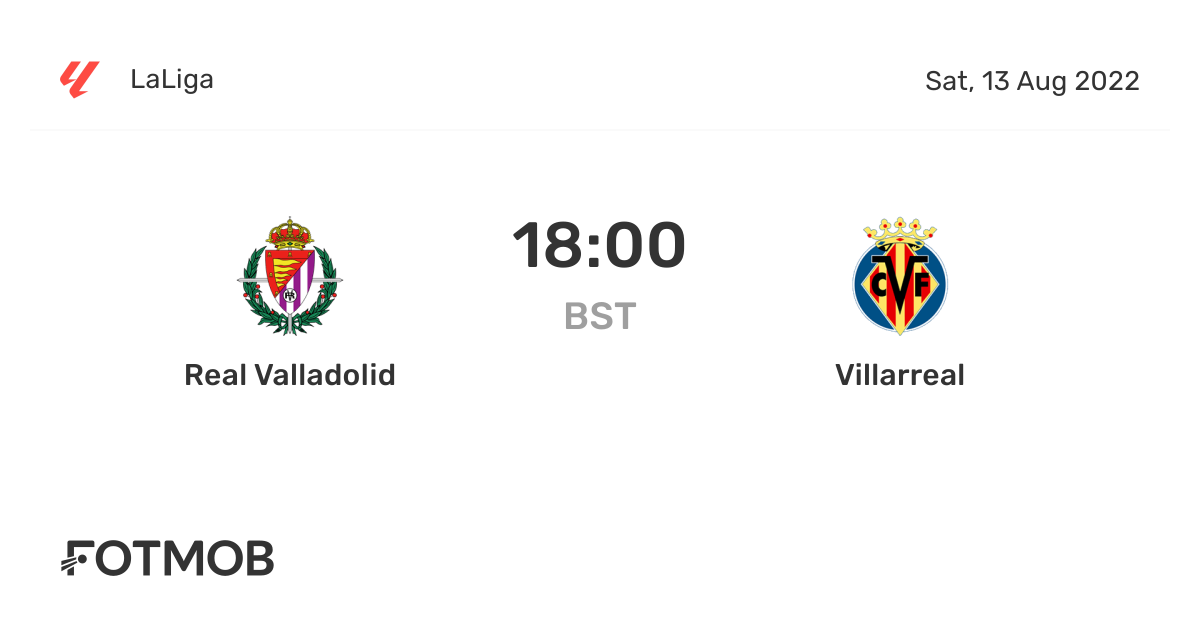 Real Valladolid Vs Villarreal Laliga On Sat Aug 13 2022 17 00 Utc